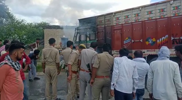 वहां से पैसा निकाल कर वापस घर आ रहे थे जैसे बाईपास पहुंचे बांदा की ओर से बालू का भरा ओवरलोड ट्रक जोरदार टक्कर मारी जिसमें आग लग गई और वहीं पर दोनों सवार जलकर खाक हो गए ट्रैक्टर चालक वहीं से फरार हो गया इस मामले में चिल्ला थाना एसओ राम आसरे का कहना है कि सूचना मिलने पर मौके में फोर्स के साथ पहुंचे हैं और उनको किसी तरह से दोनों को बाहर निकालकर पंचनामा भरकर पोस्टमार्टम के लिए भेज दिया गया है रिपोर्ट आने के बाद ही कार्यवाही होगी